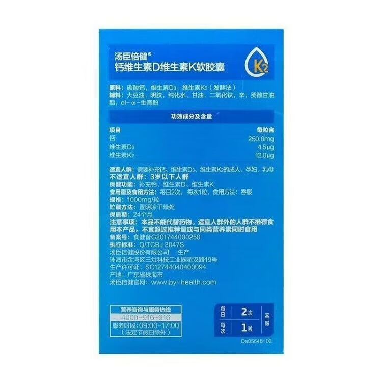汤臣倍健钙维生素D维生素K软胶囊(120粒)彩盒装