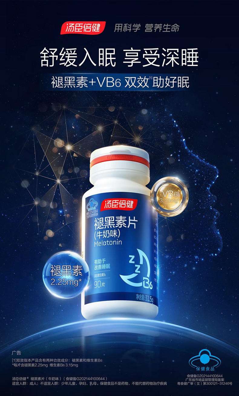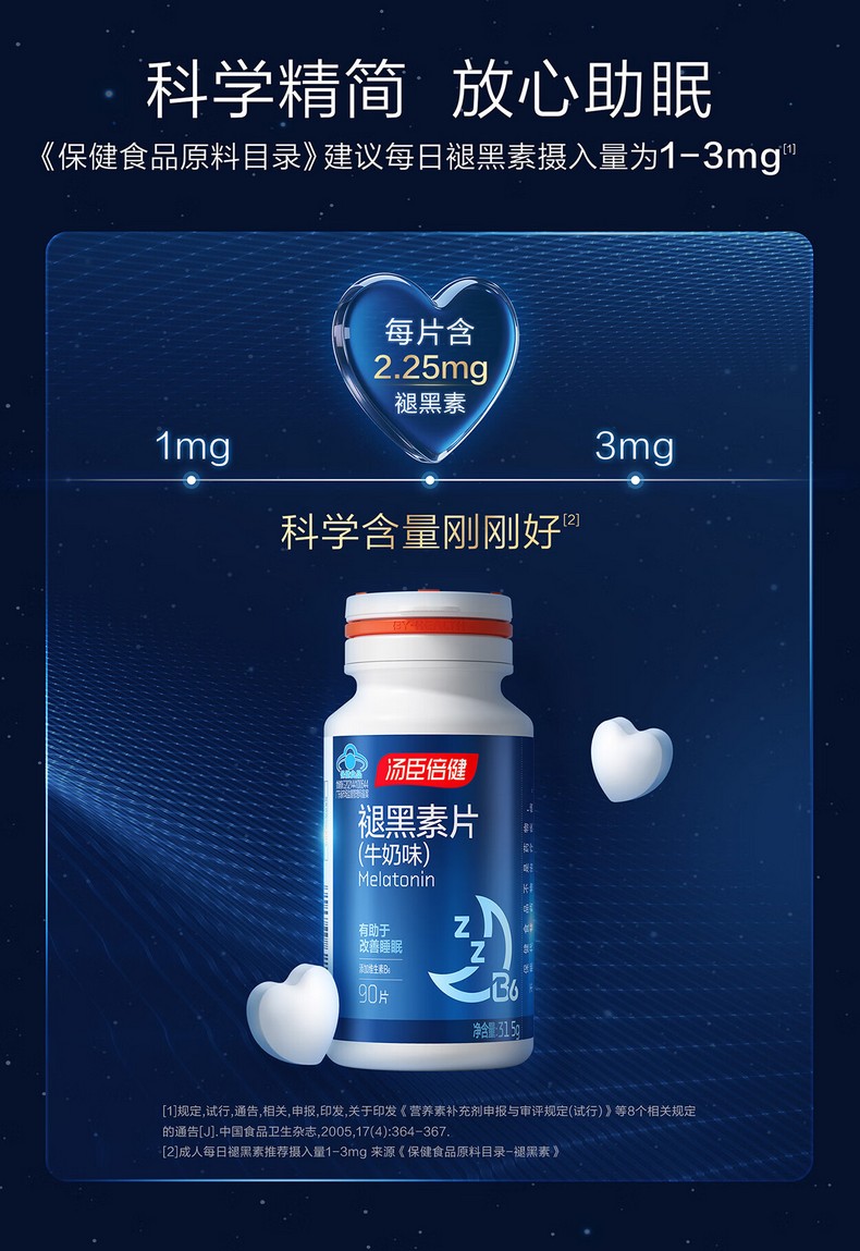 汤臣倍健褪黑素片(牛奶味)彩盒装升级版(90片)