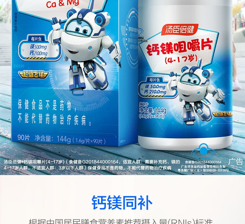汤臣倍健钙镁咀嚼片(4-17岁)-超级飞侠(90片)