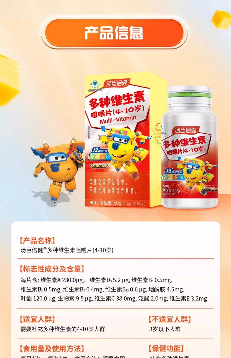 汤臣倍健多种维生素咀嚼片(4-10岁)-超级飞侠装(60片)