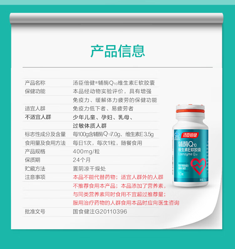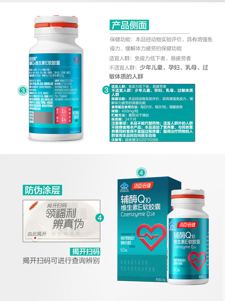 汤臣倍健辅酶Q10维生素E软胶囊彩盒装升级版(60粒)