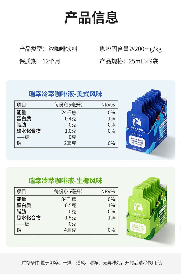 瑞幸咖啡冷萃咖啡液生椰风味25ml*9