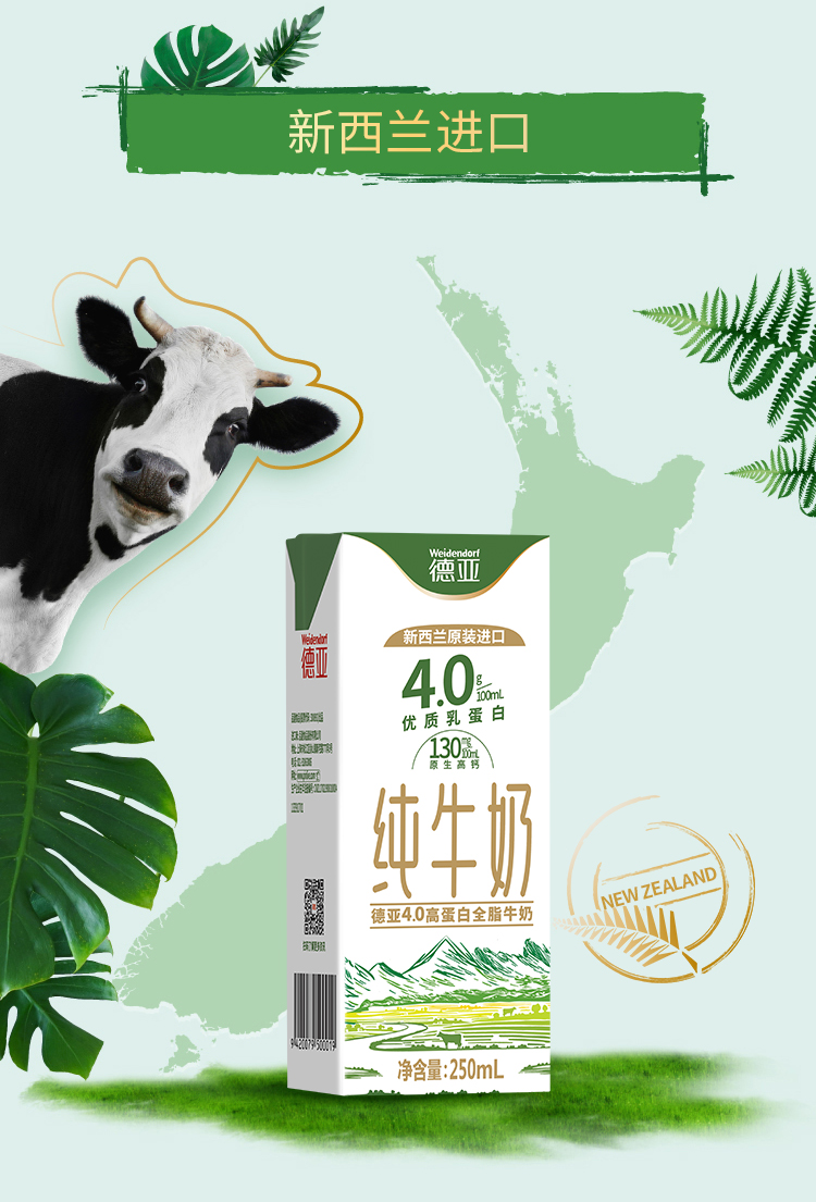 德亚4.0g 新西兰进口高蛋白全脂纯牛奶250ml*10礼盒(梦想星空版)