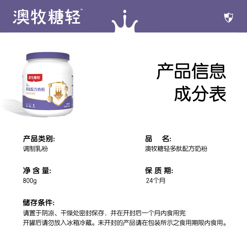 澳牧多肽奶粉*单罐800g