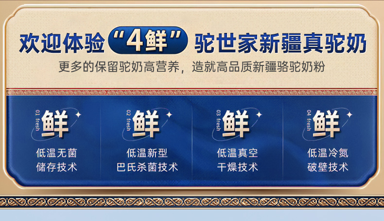 4、半自动机械挤奶;全自动生产成罐,保留驼奶营养;进口冷冻干