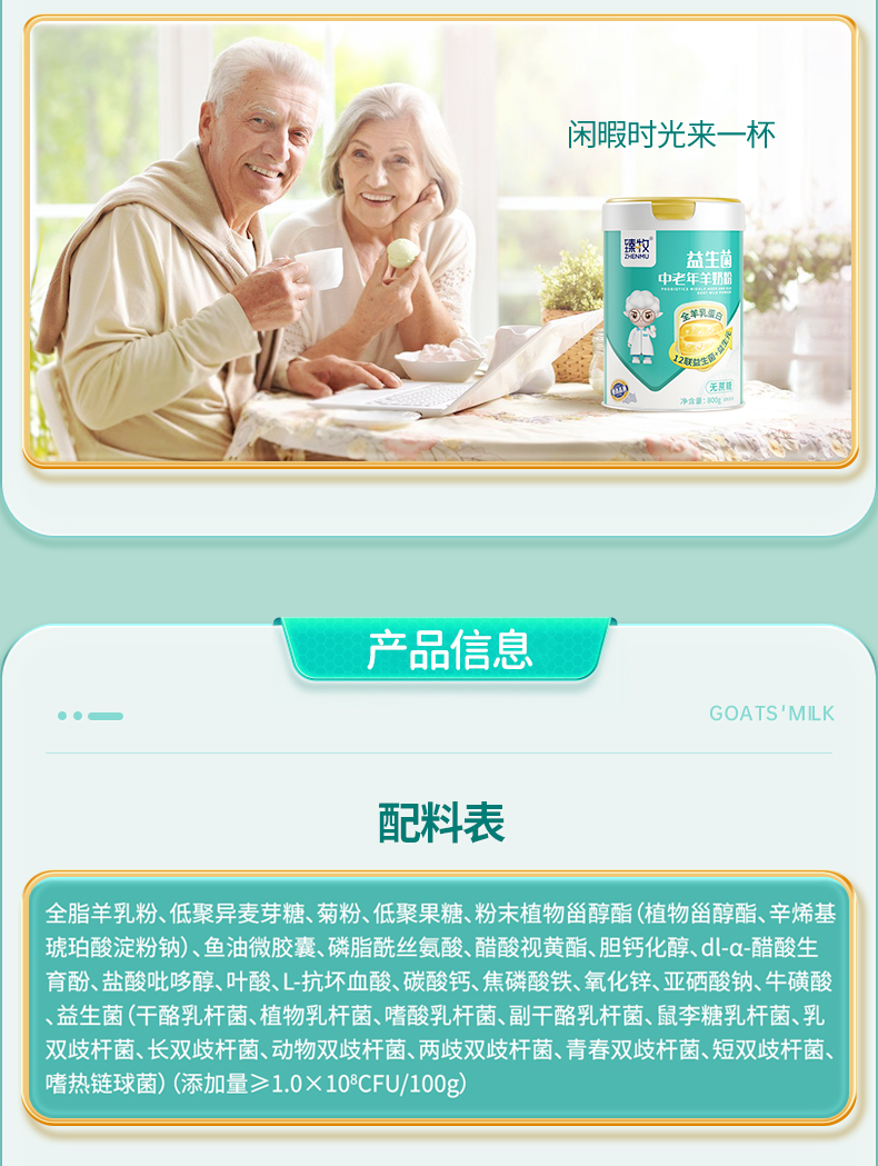 臻牧 益生菌全羊乳蛋白中老年羊奶粉800g