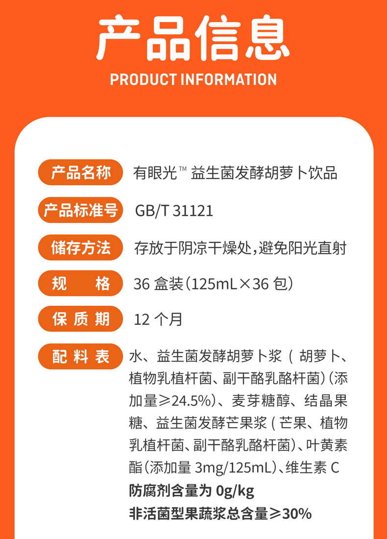 江中食疗有眼光益生菌发酵胡萝卜汁4500ml家庭装