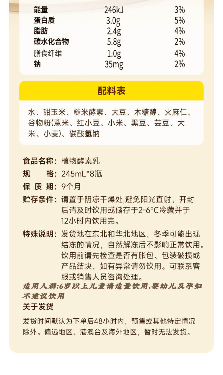 北纬47度0蔗糖植物酵素乳玉米味245ml*8
