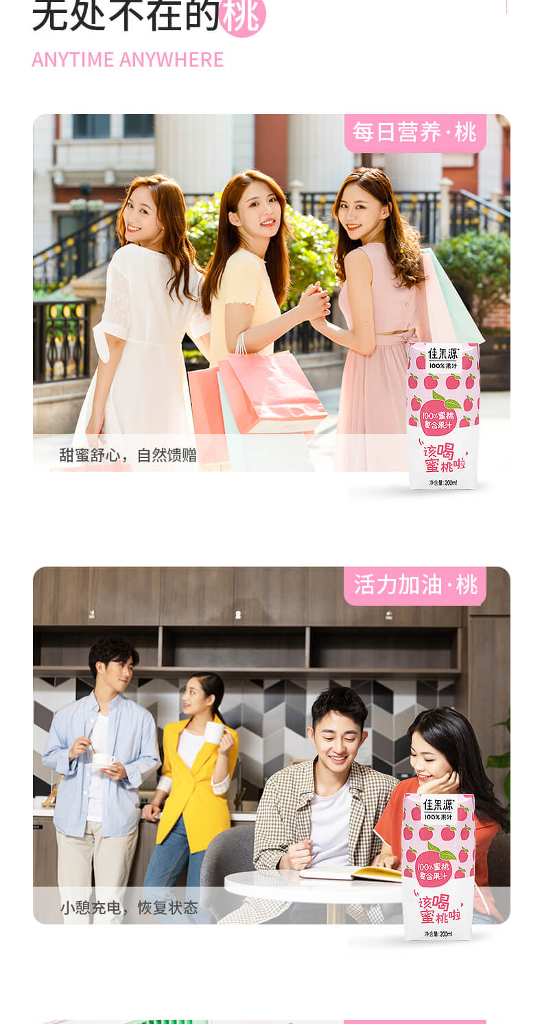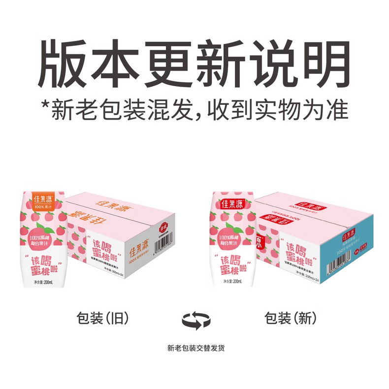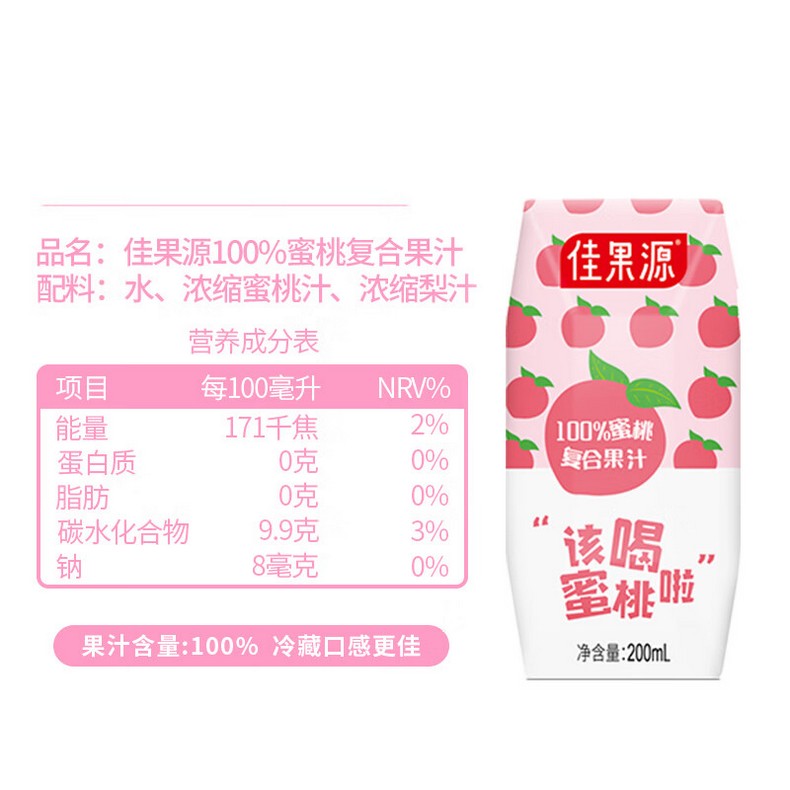 佳果源100%蜜桃复合果汁200ml*24