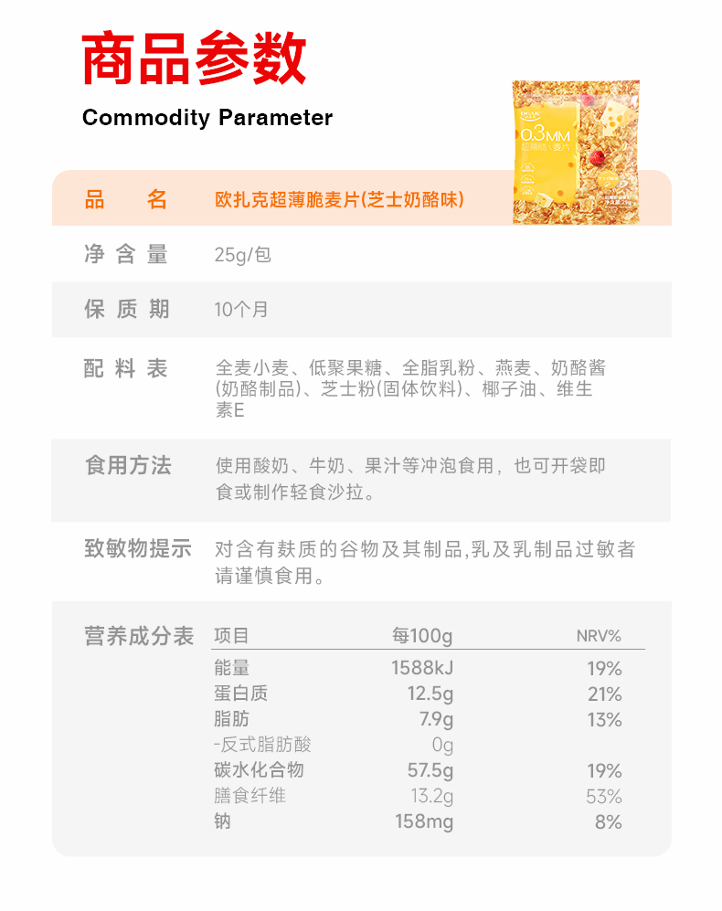 欧扎克超薄麦脆片(芝士奶酪味)25g*2袋