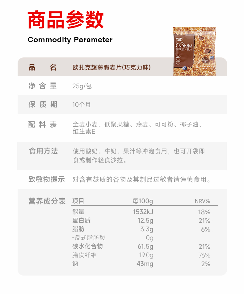 欧扎克超薄麦脆片(巧克力味)25g*2袋