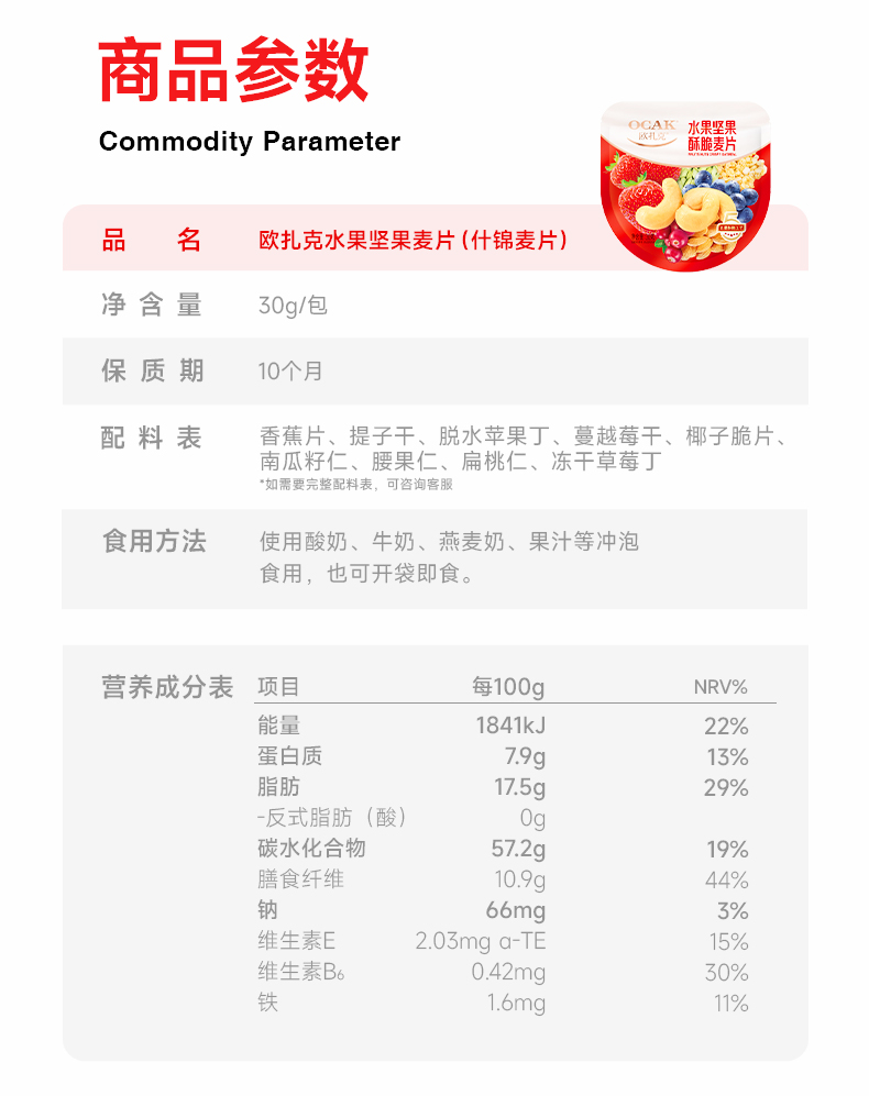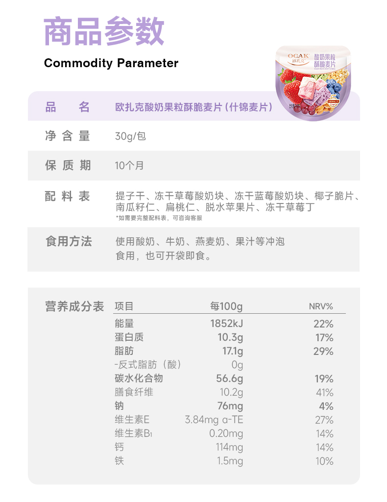 欧扎克酸奶果粒酥脆麦片(什锦麦片)30g*1袋