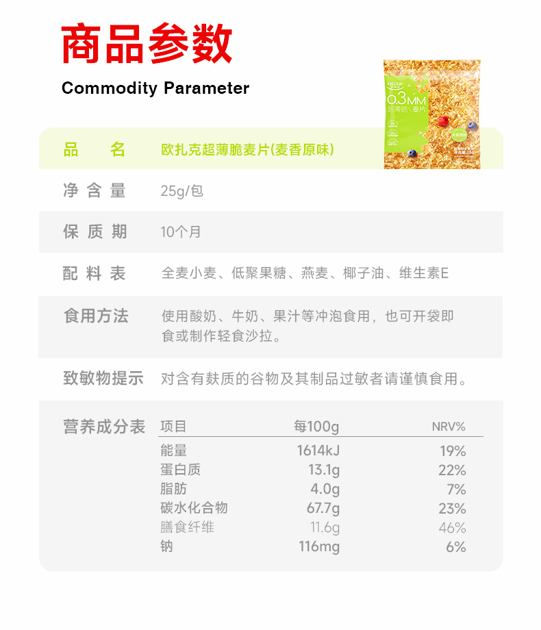 欧扎克全麦脆麦片0添加糖100g(2024版)