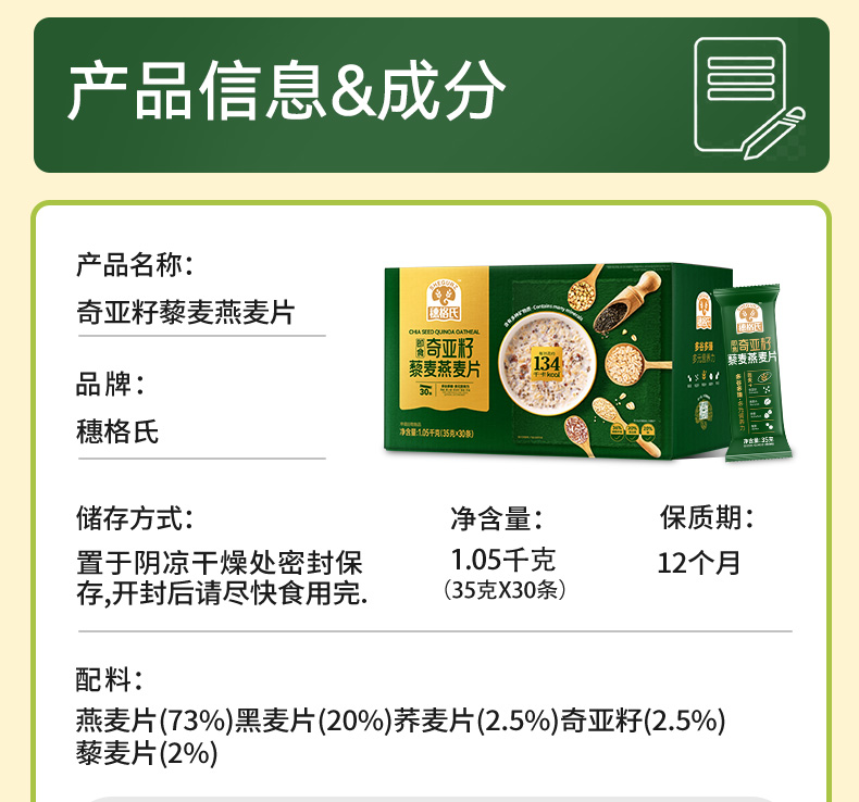 • 穗格氏 奇亚籽藜麦燕麦片礼盒1050g/提