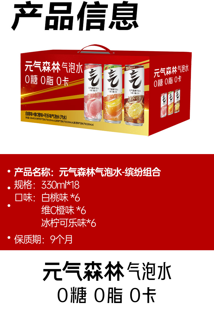 • 元气森林 缤纷组合330ml*18(0糖0脂0卡)