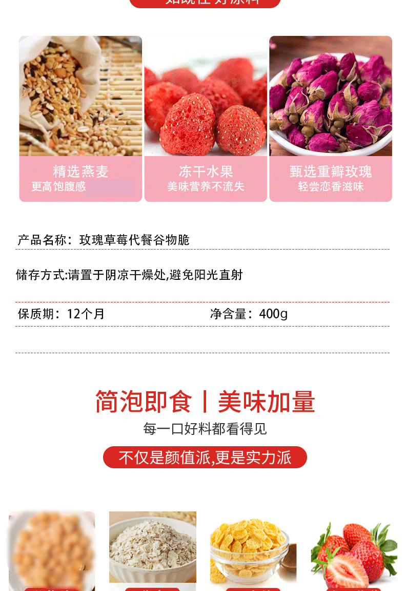 麦缤纷水果坚果谷物脆/酸奶谷物脆/玫瑰草莓谷物脆400g