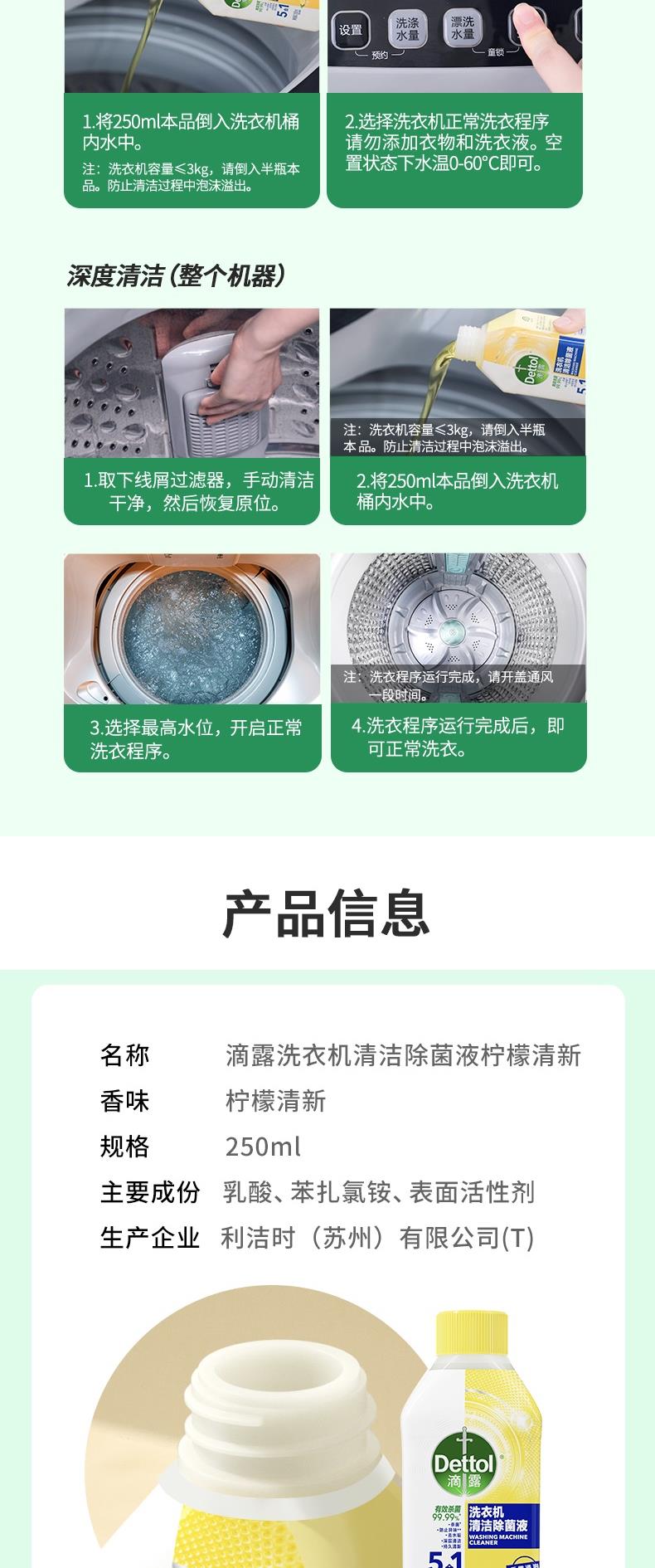 滴露洗衣机清洁除菌液 柠檬清新 250ml-2瓶装