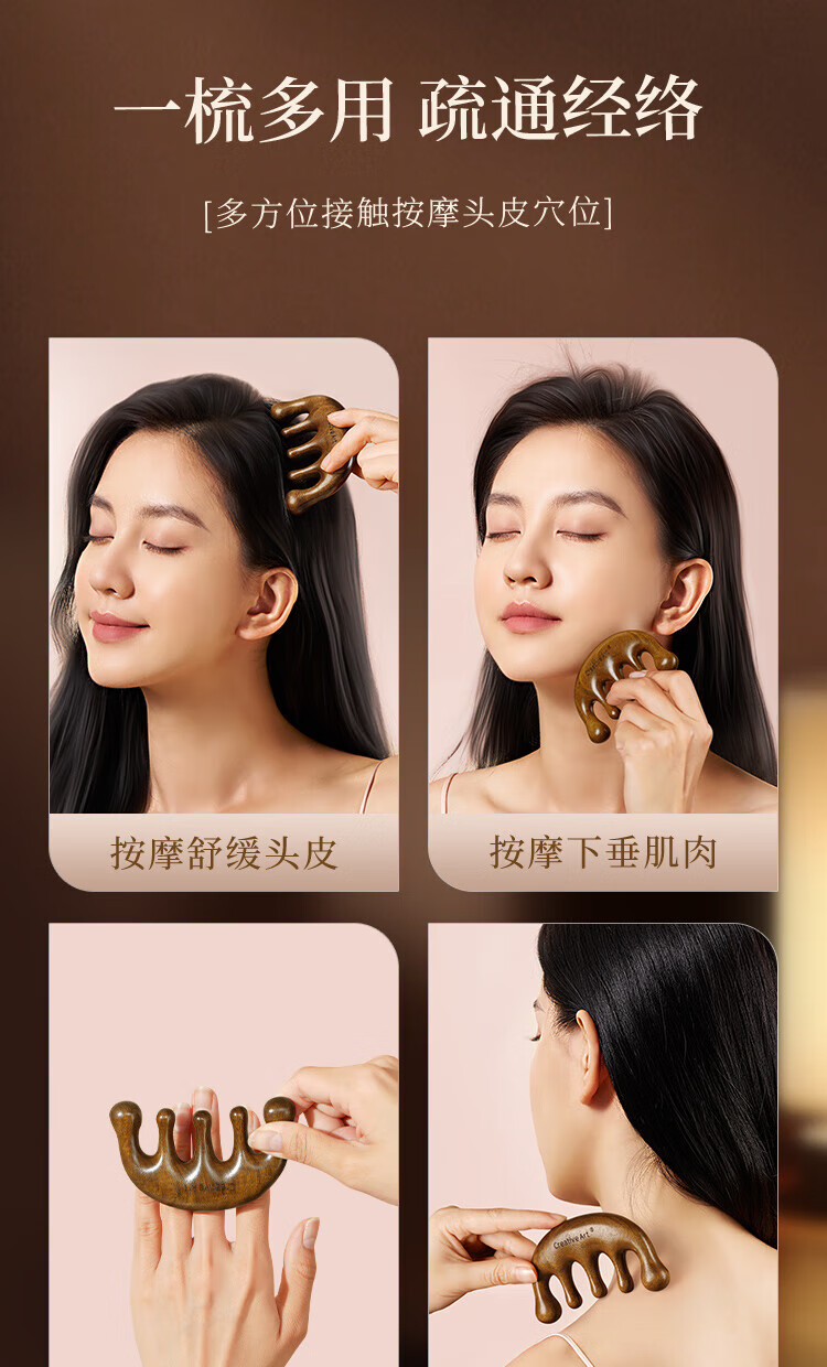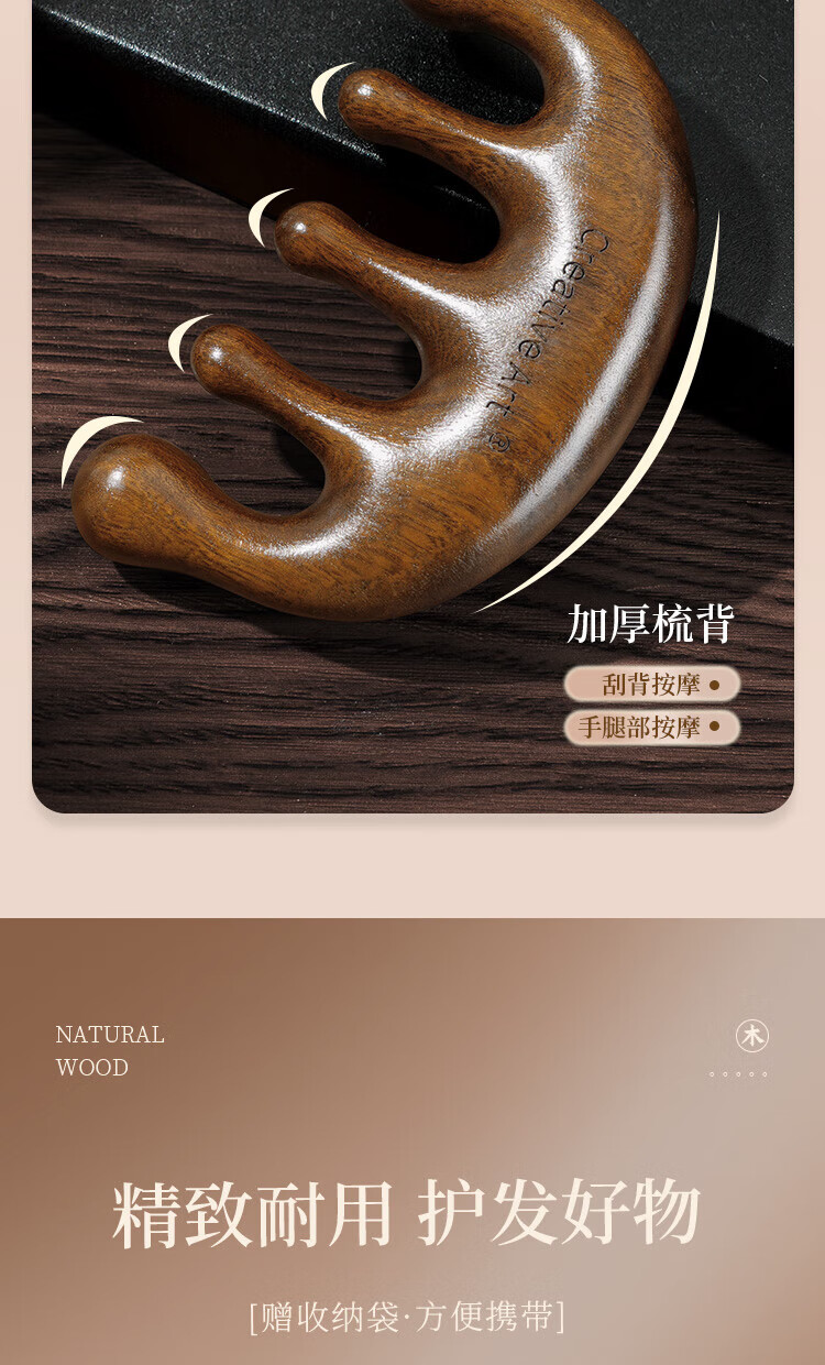 Creative Art-黑金檀木梳-A6202-无柄款+绿檀木牛角梳+礼盒