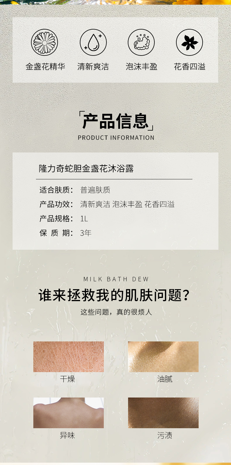 名称:隆力奇蛇胆金盏花沐浴露1L