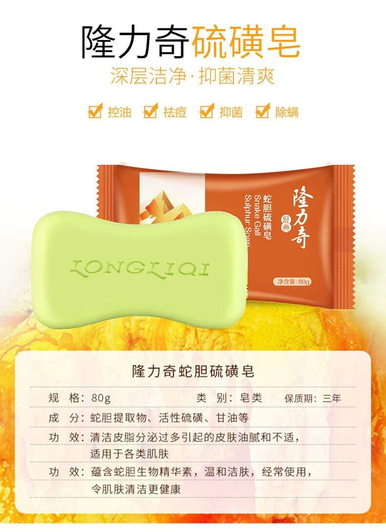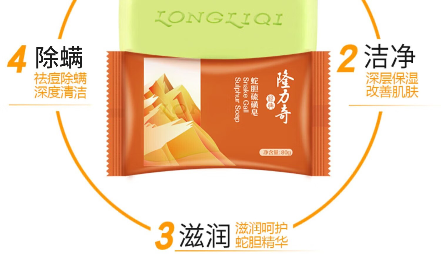 蕴含蛇胆生物精华素、活性硫磺等成分,温和抑菌;