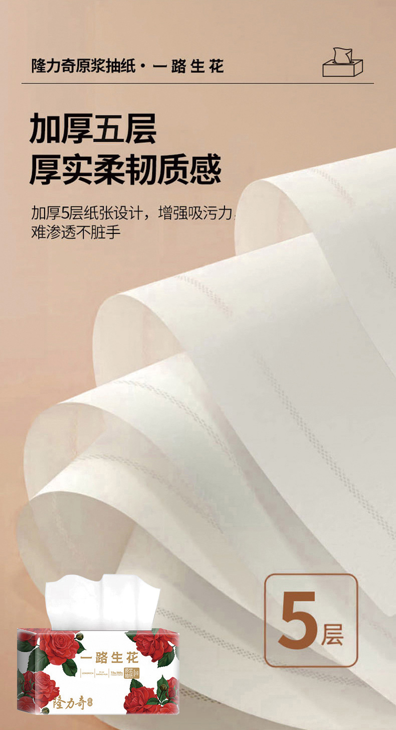 隆力奇原浆抽纸72抽*5层 360张 1包