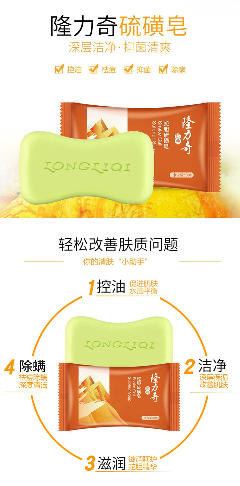 隆力奇牛奶皂95g/硫磺皂80g(两款随机发) 1盒
