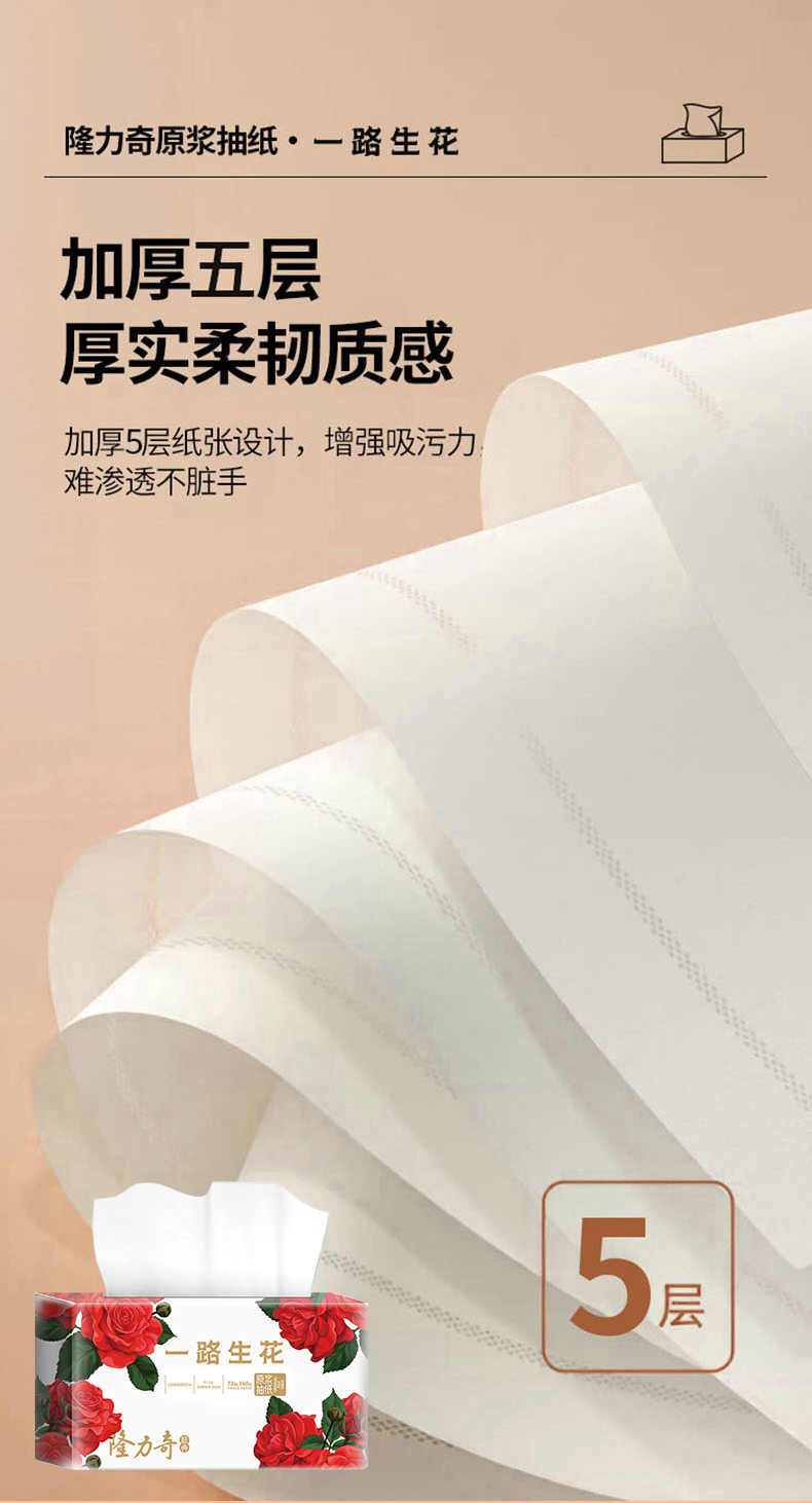 隆力奇原浆抽纸72抽*5层 360张 1包