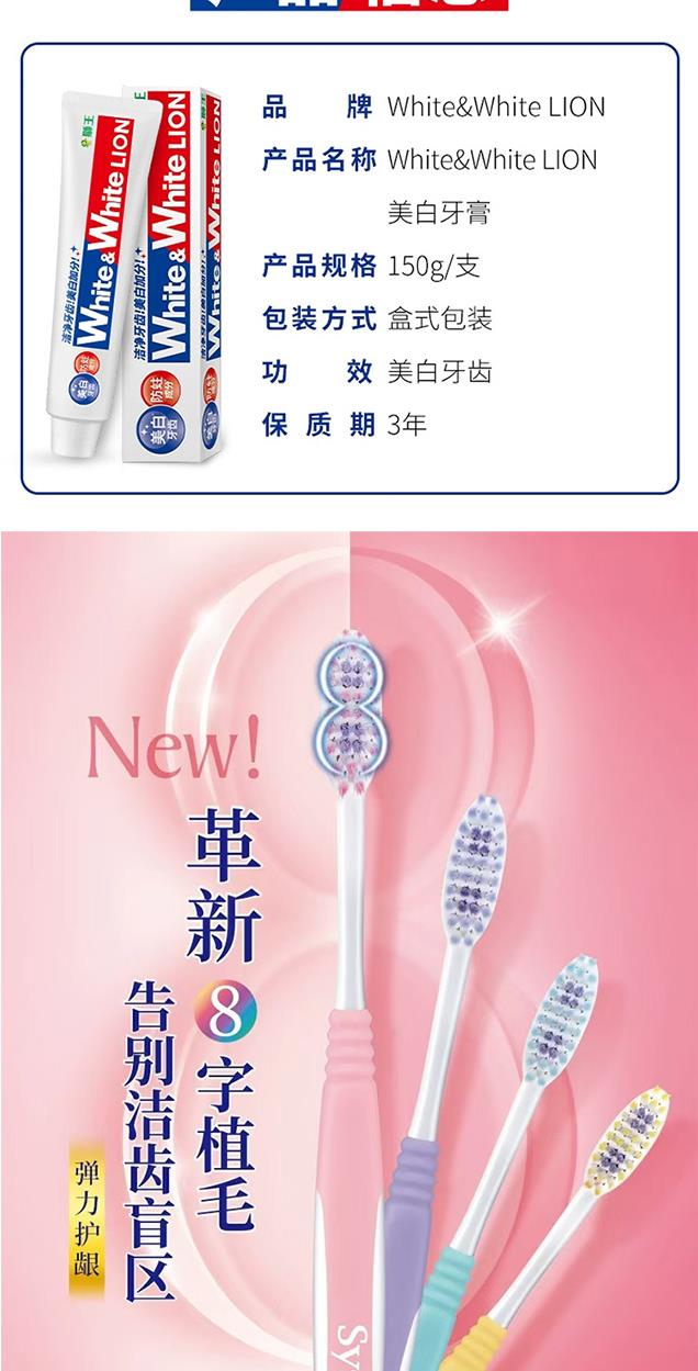 狮王WHITE&WHITE美白牙膏150g*2