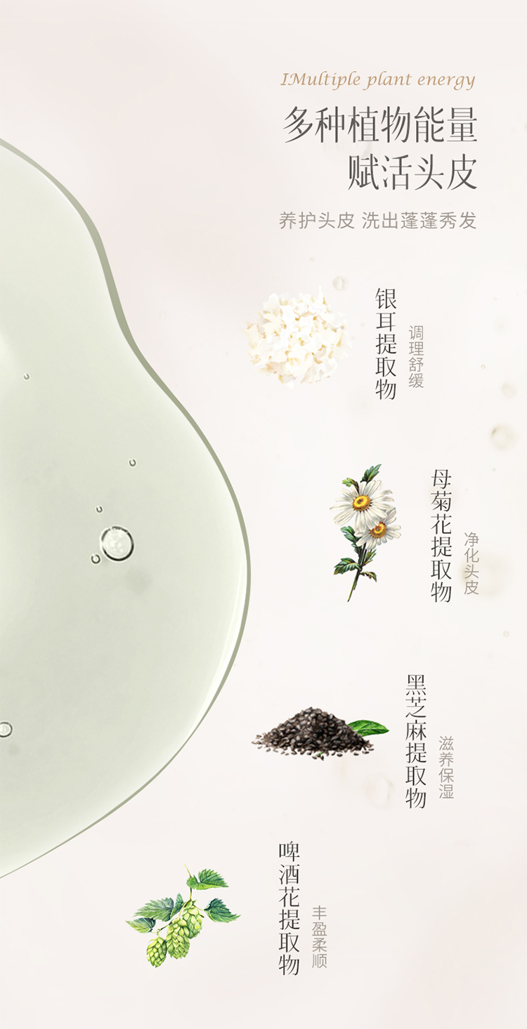 去屑控油,松软净爽,添加茶籽提取物,油腻多屑、暗哑扁塌发质适用