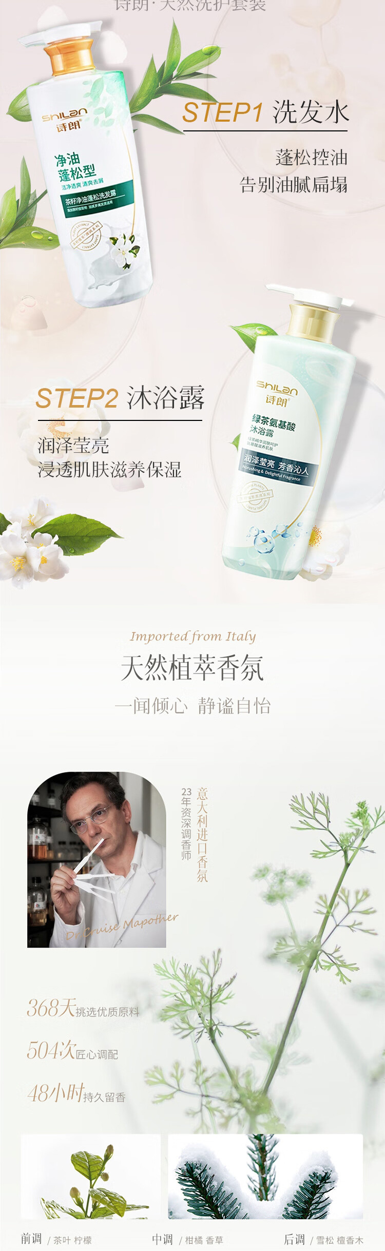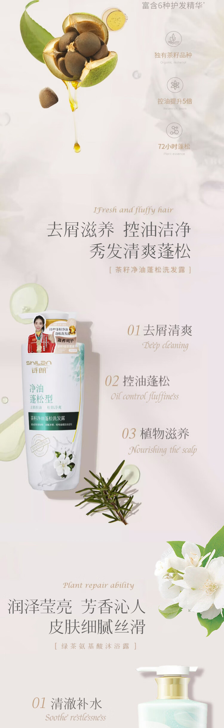 诗朗【净油蓬松】洗沐组合 茶籽洗发+绿茶沐浴 500g*2 SLTZ1000G006