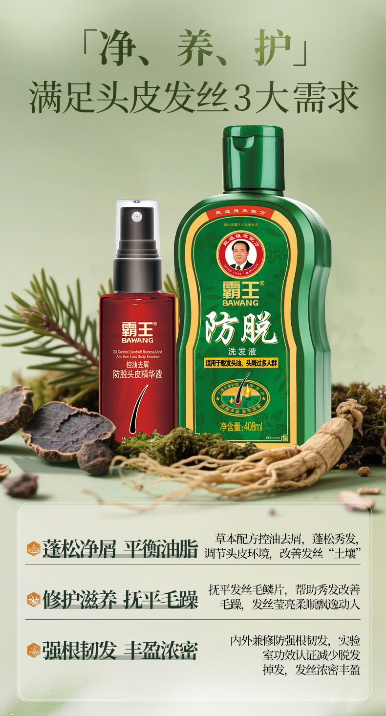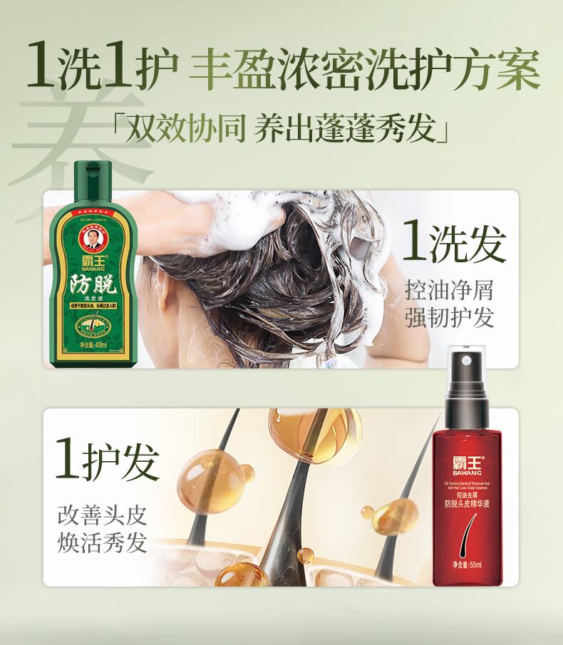 【2套装】380ml霸王防脱洗发液+55ml霸王控油去屑防脱头皮精华液