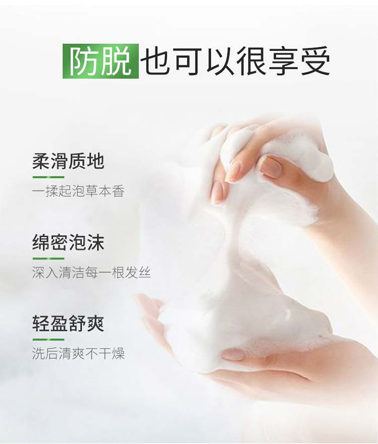富含甘草、侧柏叶、女贞子植物原液萃取精华,控油去屑,洁净头皮环境,解决致脱因素,补充毛囊营养,修护失衡头皮