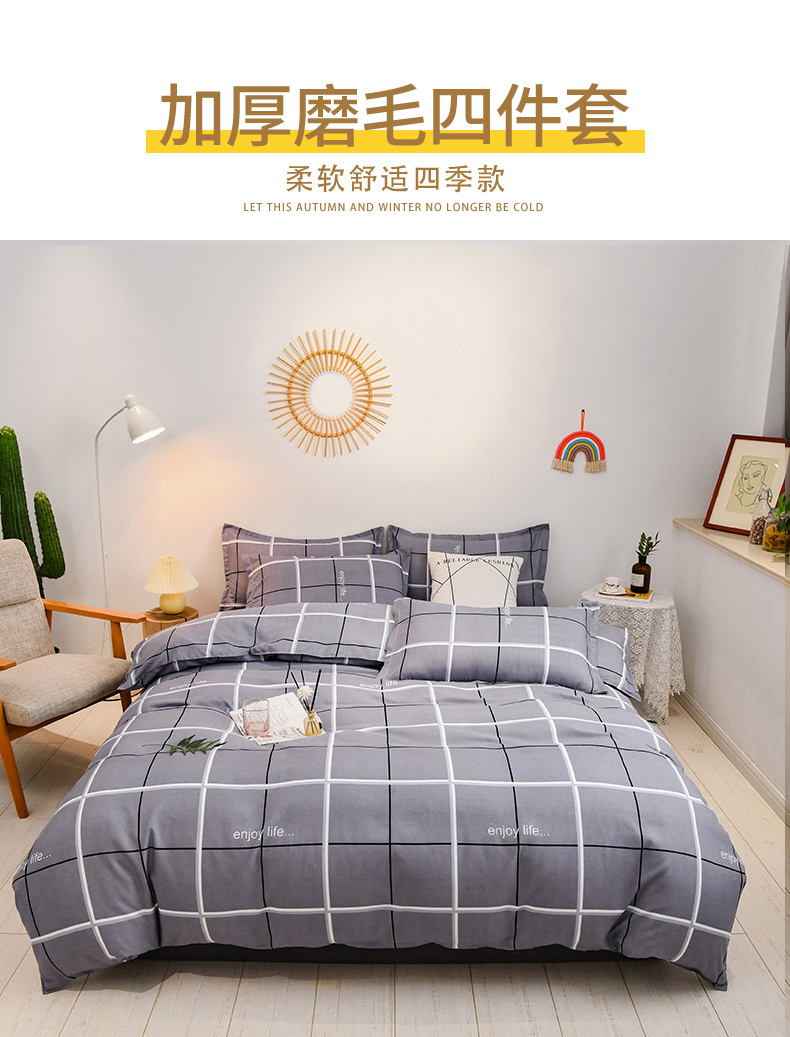罗曼罗兰加厚磨毛印花四件套 摩登格调