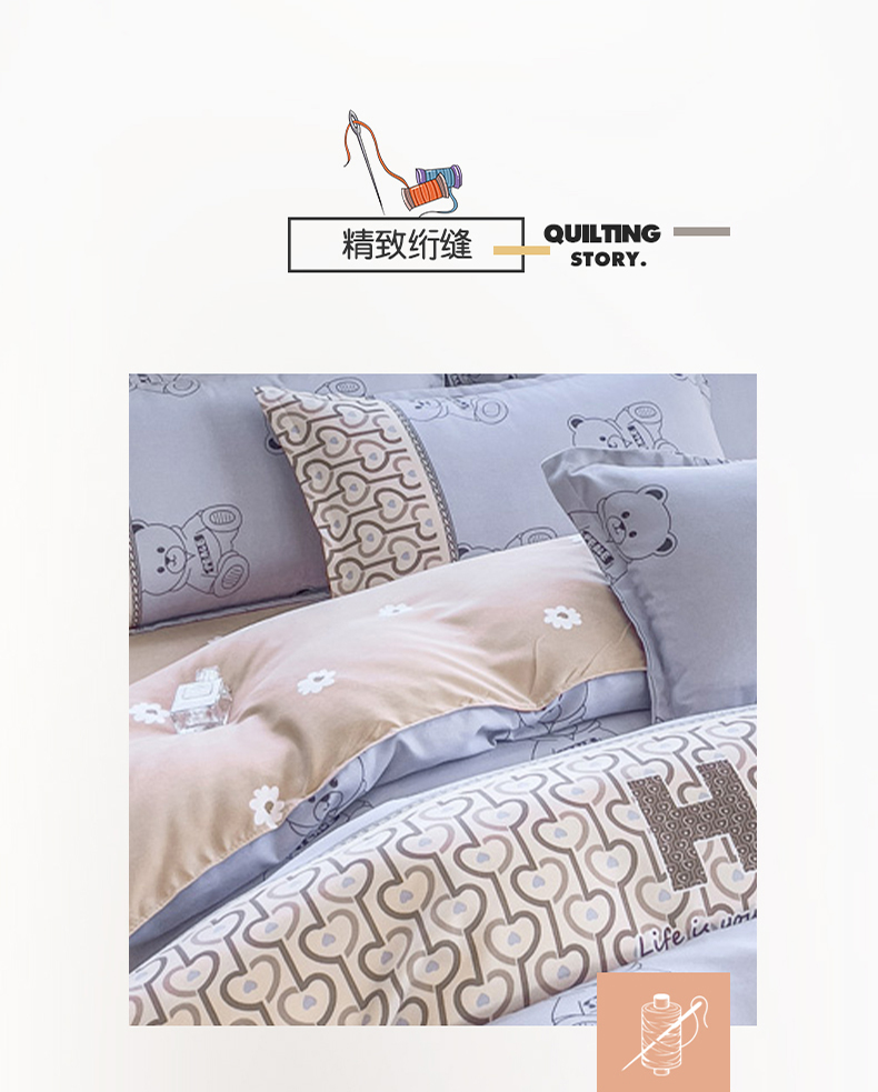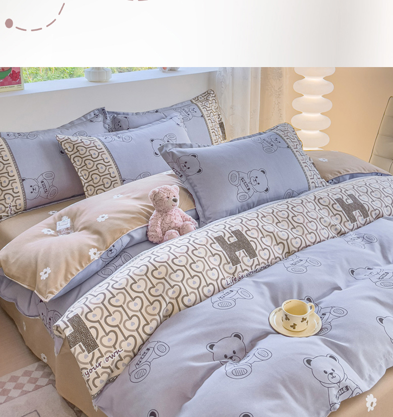 罗曼罗兰加厚磨毛印花四件套 嘟嘟熊