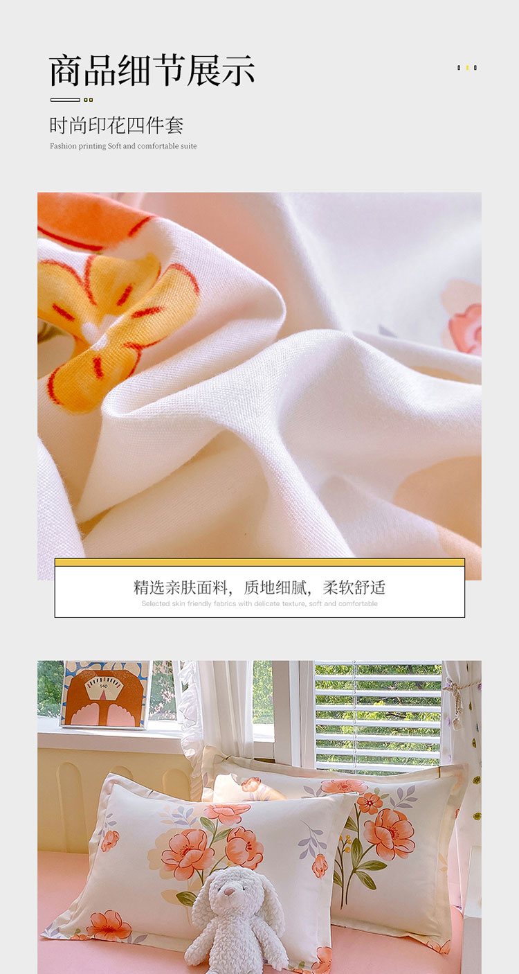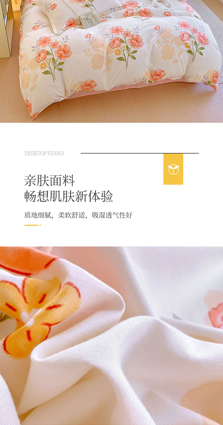 粉橘花朵铺满套件,配色柔和清新,自带田园浪漫感,铺上床瞬间点亮卧室,每天睁眼都是好心情。清新花色不挑家具风格,不管是简约风还是甜美风卧室,都能和谐融入,一键升级温馨感 。