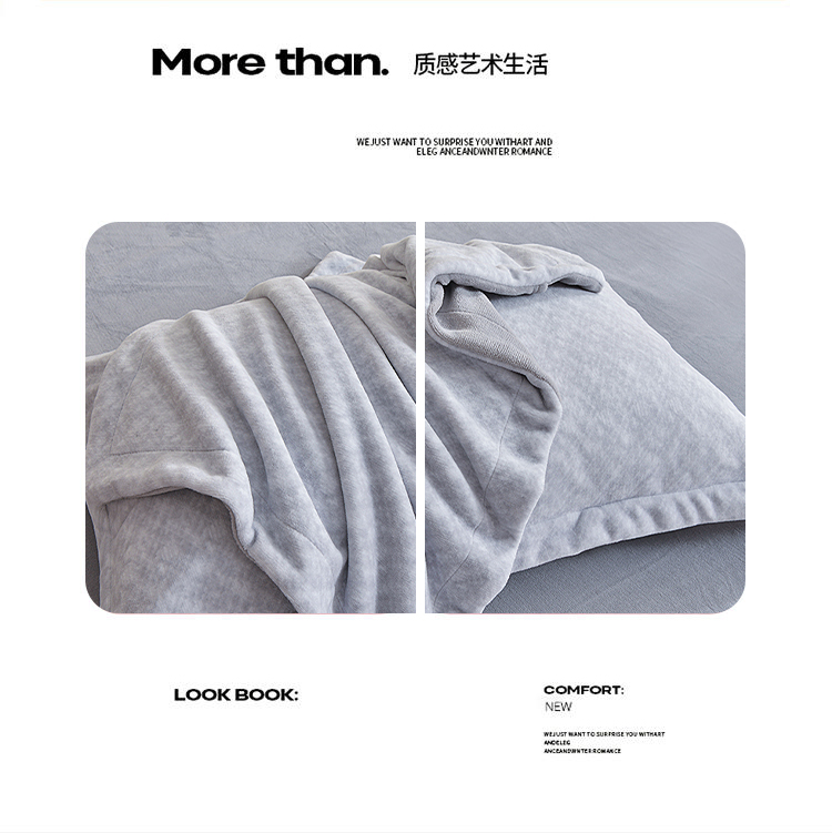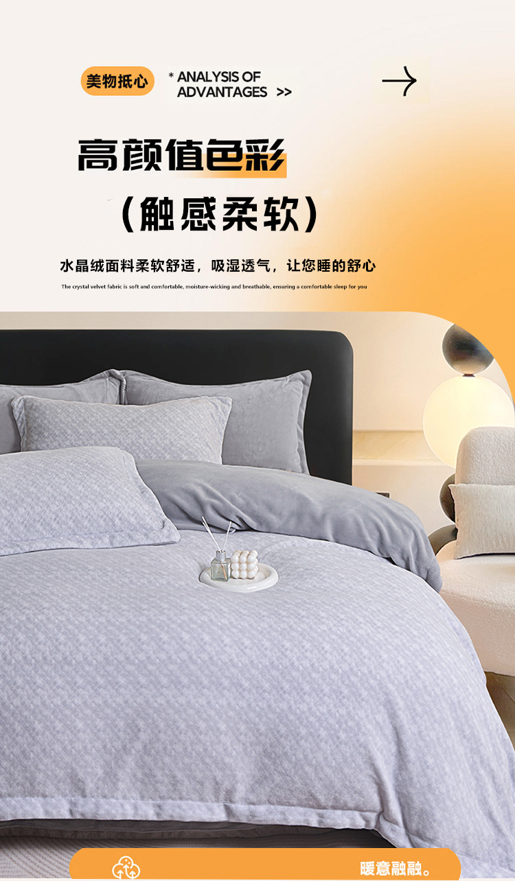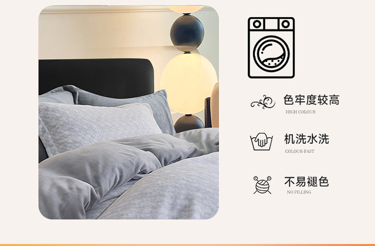 采用100%聚酯纤维面料,经过特殊拉绒工艺处理,绒面蓬松厚实,形成空气隔热层,有效锁住体温,抵御寒冬冷气,让被窝整夜温暖如春,告别手脚冰凉。聚酯纤维结构紧密但透气性佳,搭配蜂窝状织法,既保证保暖性又避免闷热感,湿气快速排出,减少夜间出汗粘腻,舒适度远超传统法兰绒。材质抗皱免熨,久用不易变形起球,机洗后仍能保持蓬松柔软;防静电处理减少毛发灰尘附着,秋冬换季收纳方便,省心更省力。无荧光剂、无甲醛,敏感肌可安心使用;加厚床笠款贴合床垫不移位,被套四角绑带固定被芯,保暖不钻风。寒冬御寒必备——高性价比的聚酯纤维绒套件,用科技温暖替代厚重压迫感,让冬季睡眠质量提升50%!