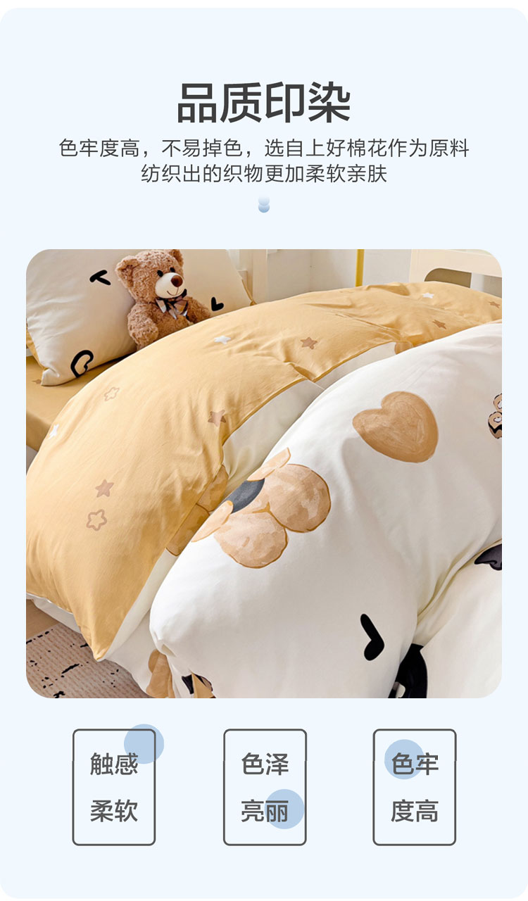 100%全棉材质,柔软透气,无化学添加,呵护宝宝娇嫩肌肤;卡通主题印花+鲜活色彩激发童趣,培养自主入睡习惯。隐形拉链、弹性包边等实用细节防移位,抗菌枕套守护呼吸健康。四季通用,机洗抗皱不褪色,高性价比省心省力!安全、舒适、趣味兼具,一套搞定儿童房萌化改造,守护宝宝甜美梦乡,宝妈育儿更轻松!