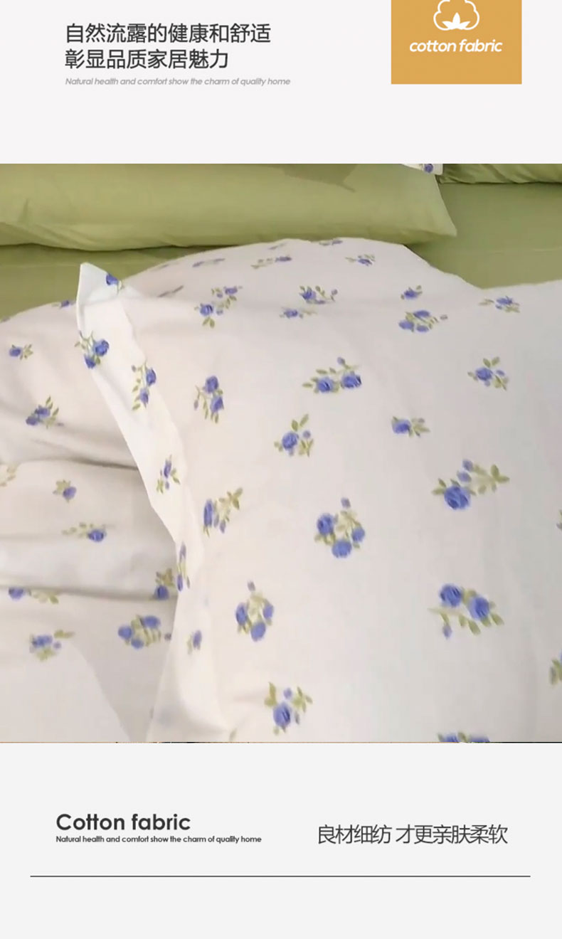 罗曼罗兰全棉四件套 淡妆初夏 蓝-4