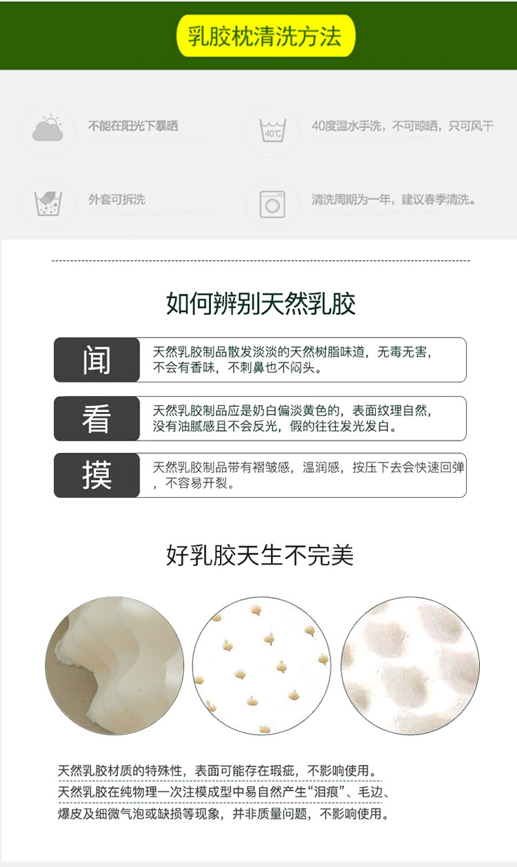 柔弹兼备细腻舒适,45D黄金密度更贴合亚洲人的颈椎,使用泰国原产天然乳胶,天然原料/无异味,透气舒适 高弹支撑,99%抑菌防螨率,检测无甲醛,高密度天然乳胶承托人体颈椎曲线,帮助快速进入深度睡眠状态
