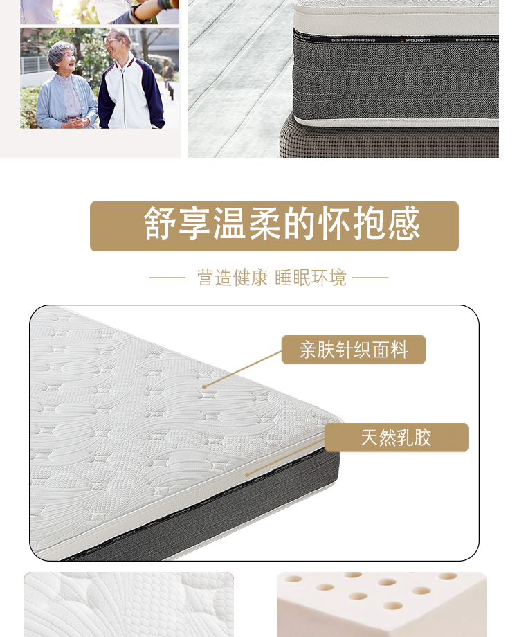 采用天然乳胶材质,柔软亲肤,贴合人体曲线,分散压力,带来云端般的舒适睡感。静音邦尼尔连锁弹簧强力支撑设计,精准支撑身体各部位,有效缓解颈椎、腰椎压力。透气性极佳,蜂窝状结构促进空气流通,保持干爽。高弹性材质经久耐用,抗变形能力强,静音效果出色,翻身无噪音干扰。无论是上班族、老年人还是儿童,都能享受健康深睡体验。环保工艺,无有害添加,搭配人体工学设计,让每晚睡眠都成为身心放松的治愈之旅。