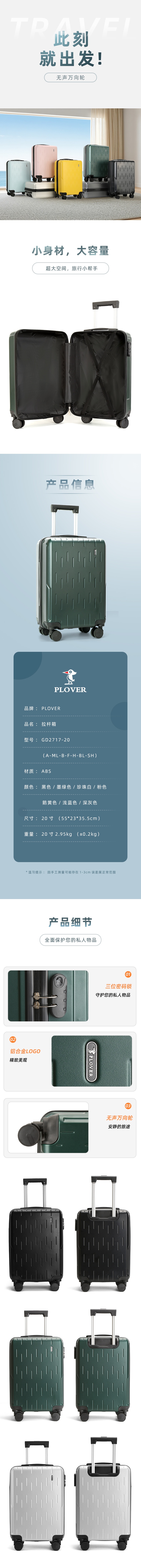 PLOVER香港啄木鸟简约大方20英寸拉链款拉杆箱GD2717-20