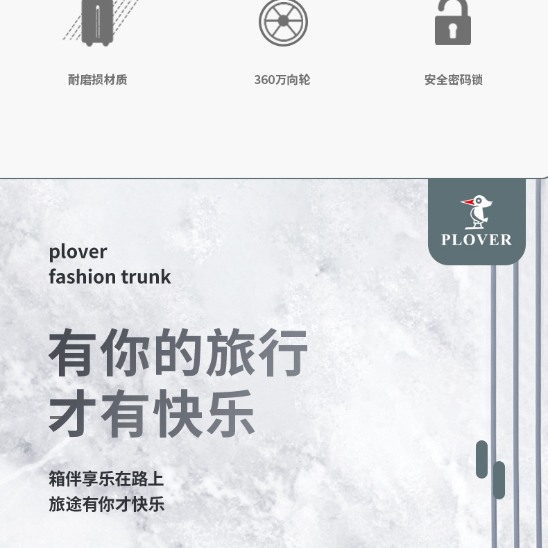PLOVER香港啄木鸟20英寸简约登机箱拉链款拉杆箱 GDLGH02-A/24英寸GDLGH04-A