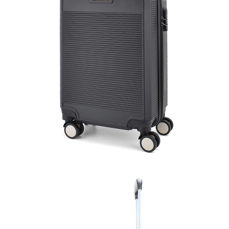 本产品采用ABS材料精心制作而成,前幅图案设计新颖,并设有品牌五金标志.易设易调的3位数密码锁.经久耐用不易变形的铁拉杆.万向飞行轮.柔软耐用的手提.内层还设置有X型物品固定带.内里布局简单明了、易放易拿更便捷.