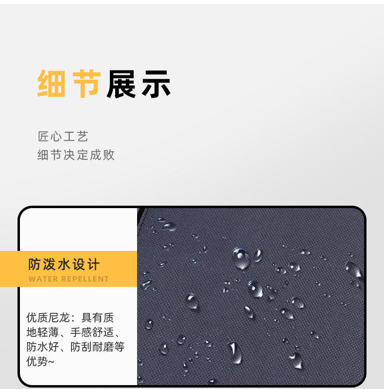 采用尼龙面料,品牌印花标识,简约不简单,1个外置拉链袋,内附主袋、夹层,透气肩带可随意调节长度,三角加固设计,分解受力,有效防止拉裂