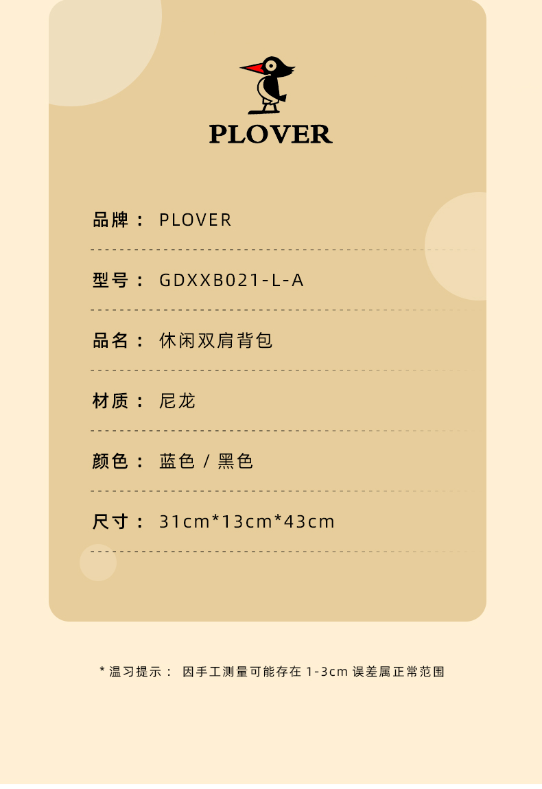PLOVER香港啄木鸟简约双肩背包 GDXXB021
