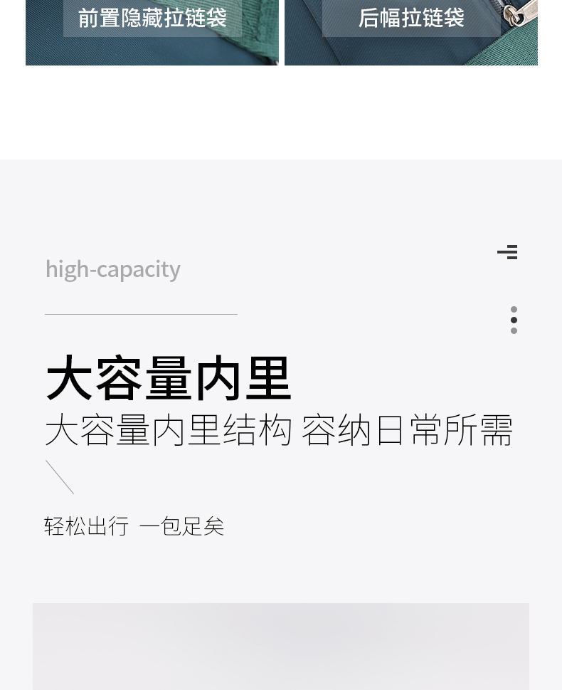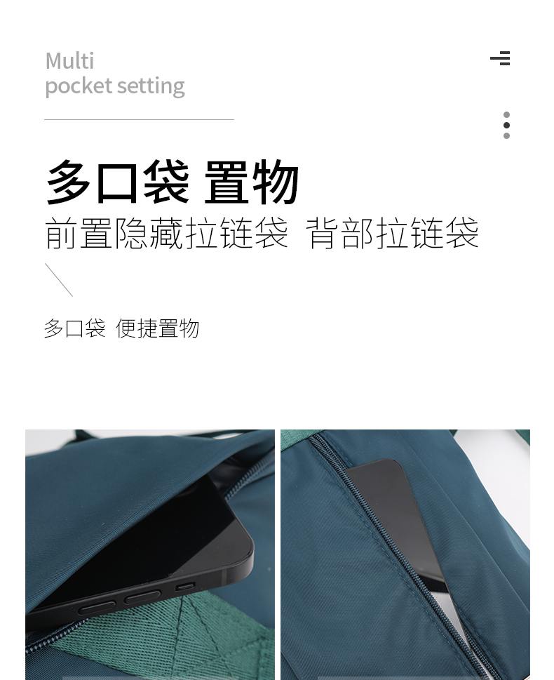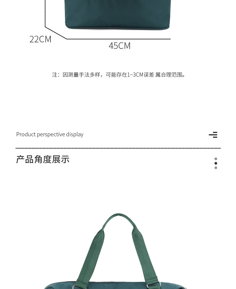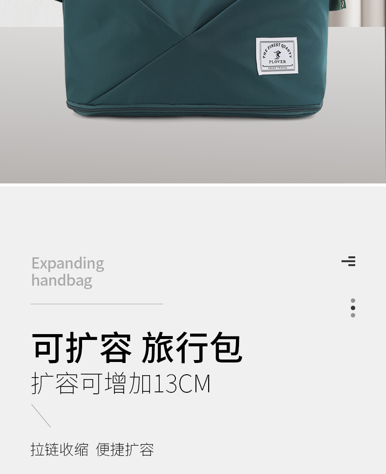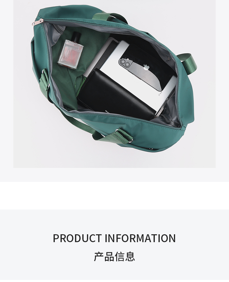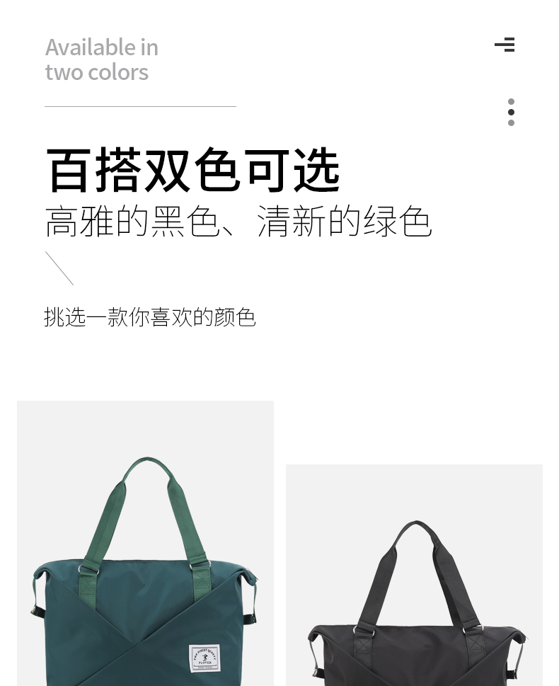 用创新设计,高品质材质与精湛工艺三大优势,以别致匠心,融合贴心设计。牛津布面料,耐磨防泼水,内外拉链暗袋,拓展加高13cm,大容量不可小觑。包袋顺滑拉链开合,大开口取物便捷。舒适手提柄,人体工程学设计,提久不勒手。可套拉杆箱使用,出行不用拎包更省力。可随意切换不同场合。是一款超棒的旅行神器!