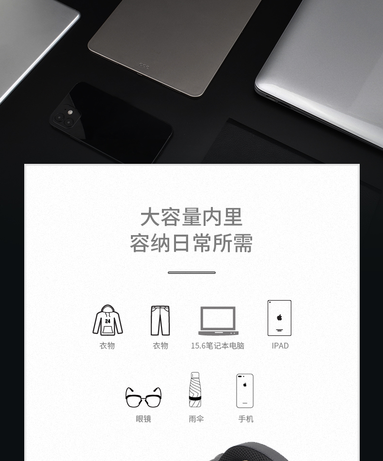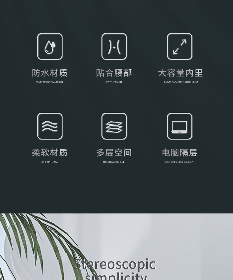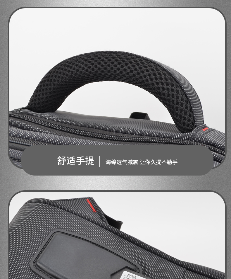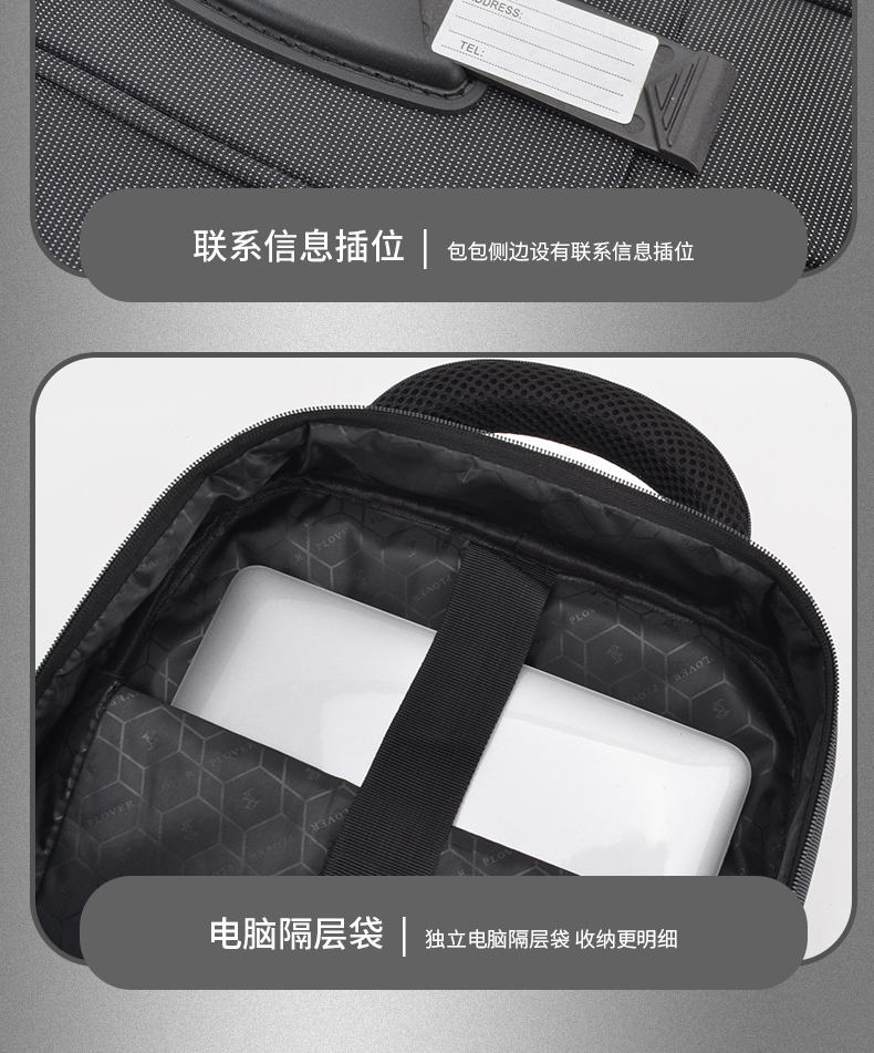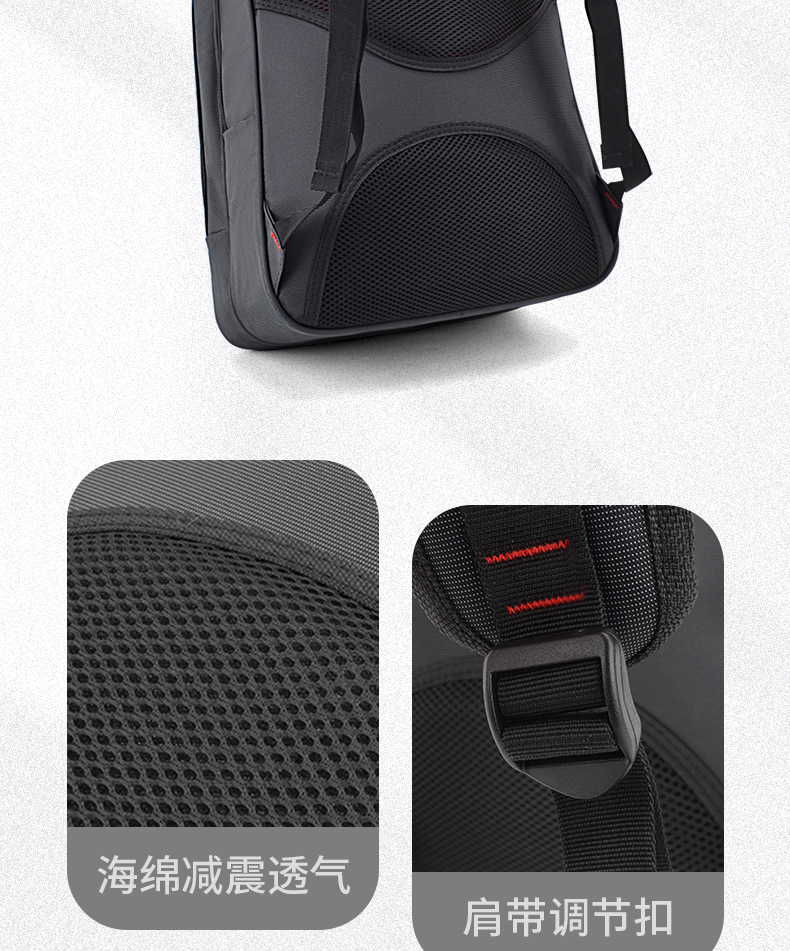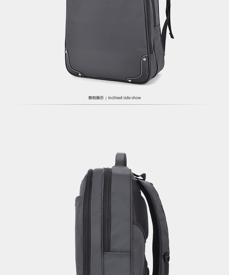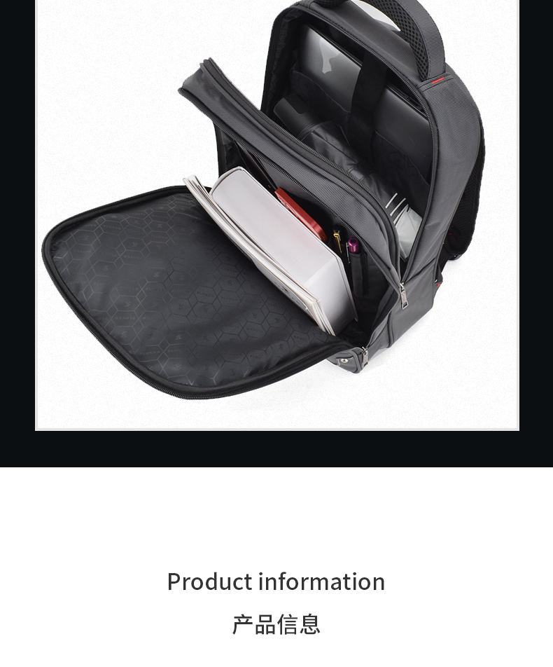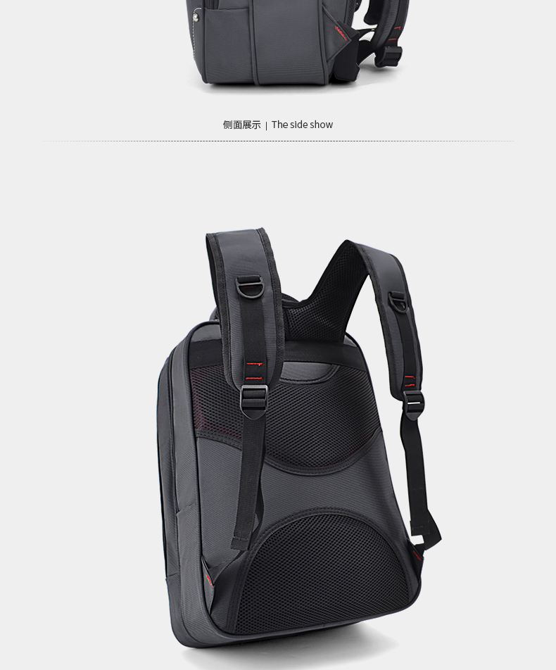 精选牛津布,高密度、耐磨,背部立体透气缓冲垫快速散热并保持凉爽,加固手提缓解压力,优质五金激光品牌LOGO,精致五金配件;侧边联系信息插位,前置拉链袋两个,多功能小插袋两个,内附主袋、电脑夹层、轻松装纳日常,适合更多消费者