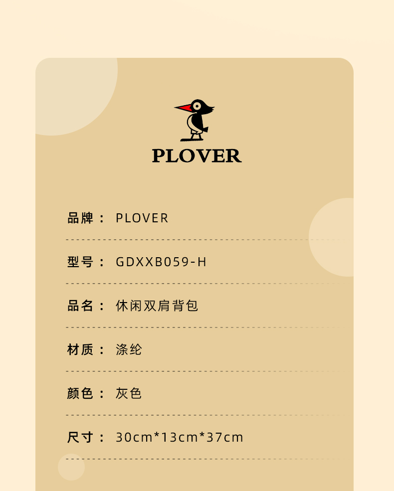 PLOVER香港啄木鸟灰色手提,肩背两用包 GDXXB059-H
