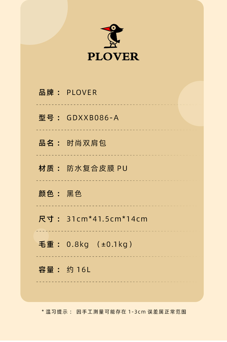 PLOVER香港啄木鸟时尚商务双肩包 GDXXB086-A