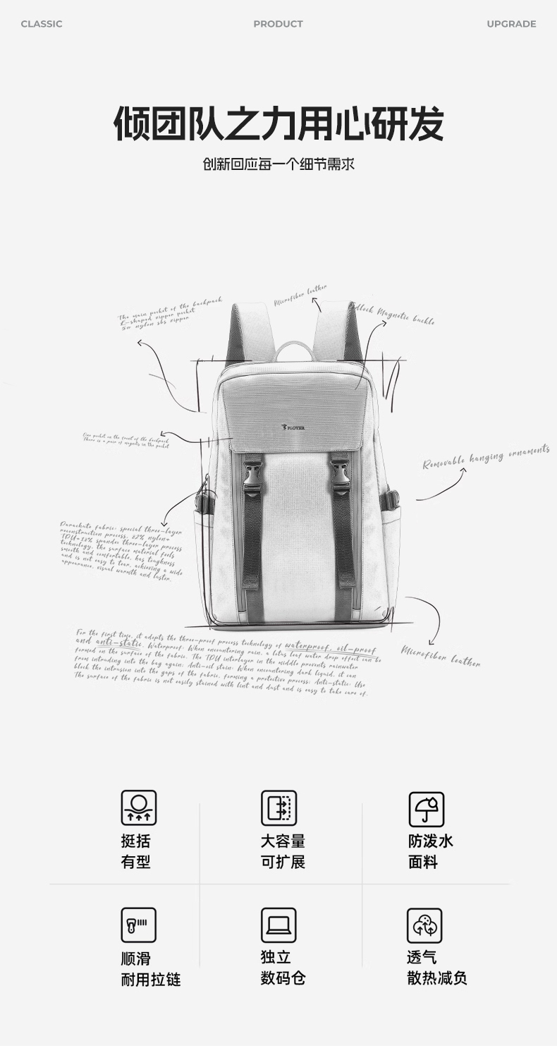 PLOVER香港啄木鸟男款双肩包赛博商务风格双肩背包 GDXXB082